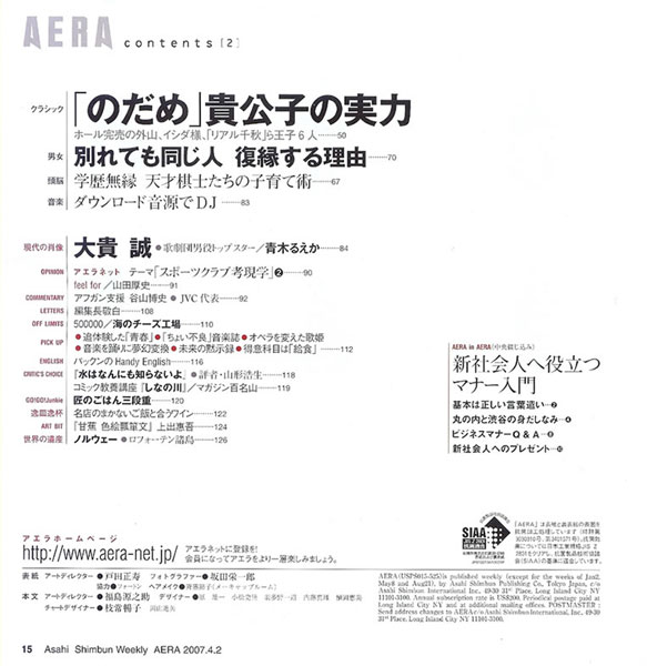 ※ AERA (No.16 増大号 平成19年4月2日発行)にて掲載されています